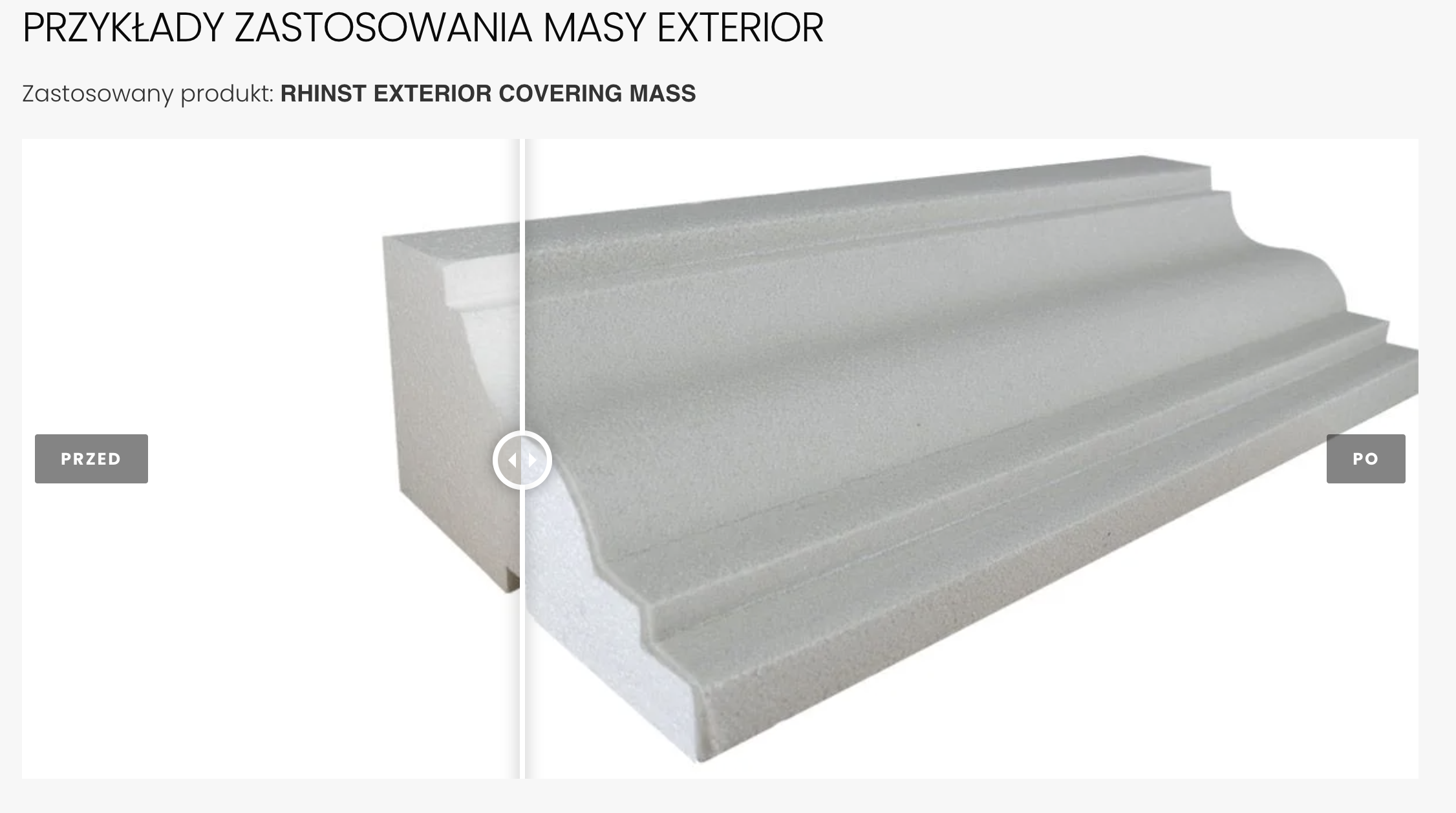 Rhinst Exterior Covering Mass to nowatorska masa powłokowa, która wykorzystuje najnowsze osiągnięcia technologiczne, aby dostarczyć doskonałe rozwiązanie do pokrywania elementów architektonicznych wykonanych z polistyrenu ekspandowanego (EPS). Jest to produkt, który zapewnia niespotykaną dotąd trwałość, elastyczność i wygodę użytkowania zarówno w przestrzeniach zewnętrznych, jak i wewnętrznych.